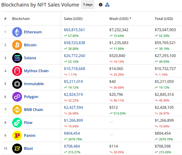 - Ethereum remains the top blockchain for NFT sales volume, with volume up +57.85% to $65.81m. It’s a bunch