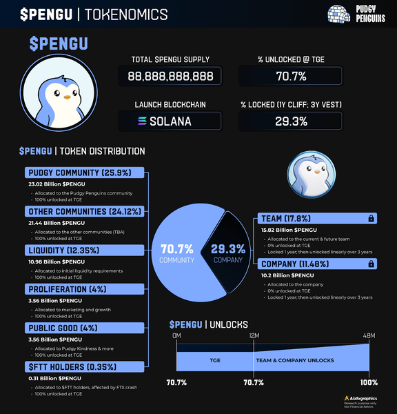 - The Pudgy Penguins sent shockwaves through Web3 last week when they announced that they’ll be launching a Solana memecoin called $PENGU. Pudgy Penguins prices soared to over 22 ETH on secondary, flipping the Bored Ape Yacht Club floor, and driving volume to a multi-year high. This token will drop this December and will be given to Pudgy and Lil Pudgy holders, along with a small allocation to roughly 15 other NFT communities.