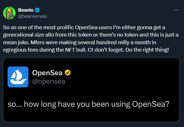 OpenSea’s token is still on the horizon, and while it will not be dropping in 2024, it might arrive at a perfect time early next year to fuel the peak of the NFT cycle. That’s why these airdrops are so important. They keep traders liquid and keep them trading NFTs. After all, that’s how they typically earned these airdropped rewards, and it’s likely they could see another round of rewards from some of