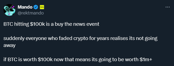 Let’s start with the biggest story of the past week: Bitcoin broke $100k! It’s a number we’ve speculated about for years, and it arrived with a type of energy that has electrified the market. While the broader crypto market is stuck in PVP mode and BTC is fighting to regain $100k, it’s pretty clear that at the macro level we’re heading into a very special part of this bull run.