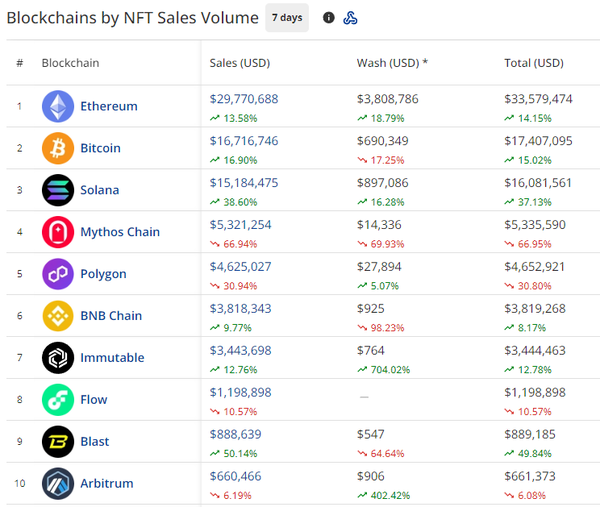 - Ethereum saw $29.77M in NFT sales over the past week, a +13.58% increase from last week. Ethereum is still