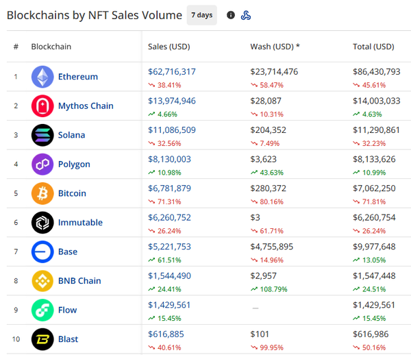 - Ethereum was the top blockchain by NFT sales volume with $62.71m in