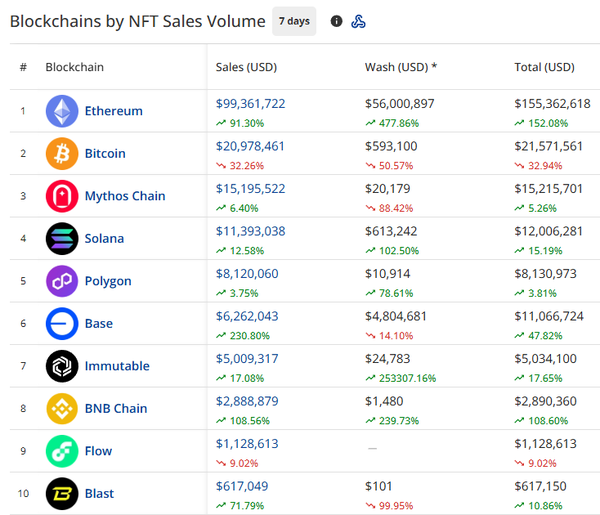 - Ethereum sales rocketed up +91.30% to $99.36M in the past 7d, and you