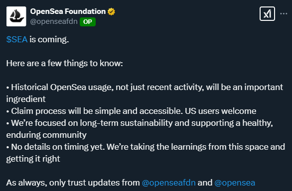 upcoming SEA token, which was also officially announced last week. Early NFT traders and current platform users will all get in on the token action, so for now we await tokenomics, launch date, and other details.