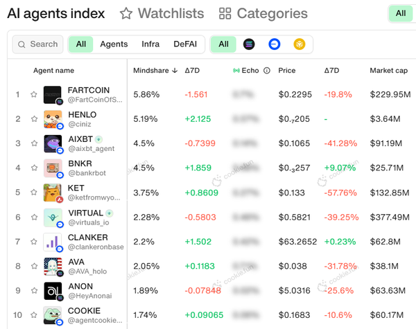 The AI crypto market cap fell to 3.91B, the lowest value we’ve seen in 2025. No sector of AI is safe (DeFAI, Infra, Agents), and not even the top tokens have been spared. AIXBT has fallen to a $92.19M MC, GOAT to $55M, and even AI16Z