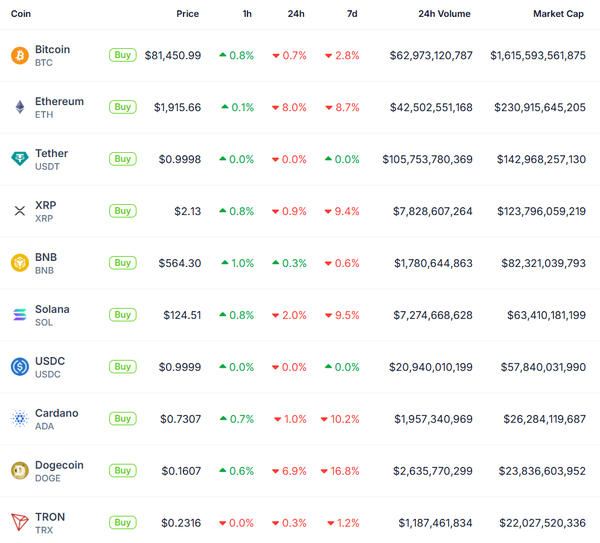 crypto market is the economy. Donald Trump’s tariff war could come to an end at any time, or if things go as he says, it could pay off in a big way for the economy later this year. That’s little consolation for what we’re seeing right now, but as we’ve learned in the past, it pays to pay attention even in a bear market. Top Gainers 7d