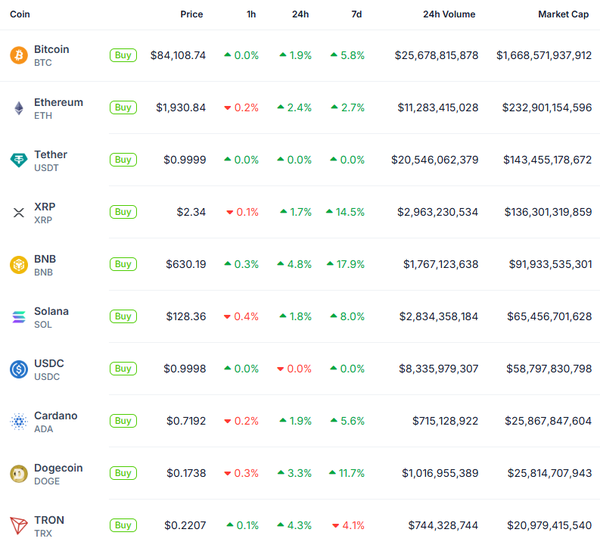 Still, tariffs will control what way this market moves. That is, until we have a meaningful policy around crypto implemented. The GENIUS Act should be up for a vote within 120 days, and if approved, could be the catalyst to send Bitcoin to new all-time highs. Top Gainers 7d