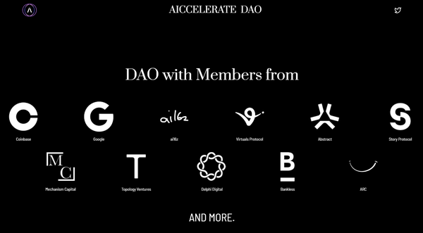 On that front, we saw the emergence of a new AI DAO this past weekend called AICELLERATE, and boy was it a spicy event. The new AI DAO boasted its powerhouse members and partners, coming from Coinbase, Google, ai16z, Abstract and more, and had partnerships with the biggest