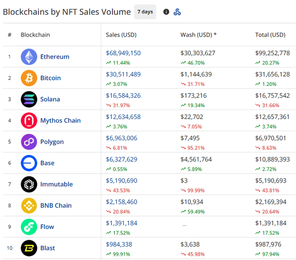 - Ethereum NFT sales are up +11.44% this week to $68.94m, though sellers fell -59.17%. As L2s launch (like