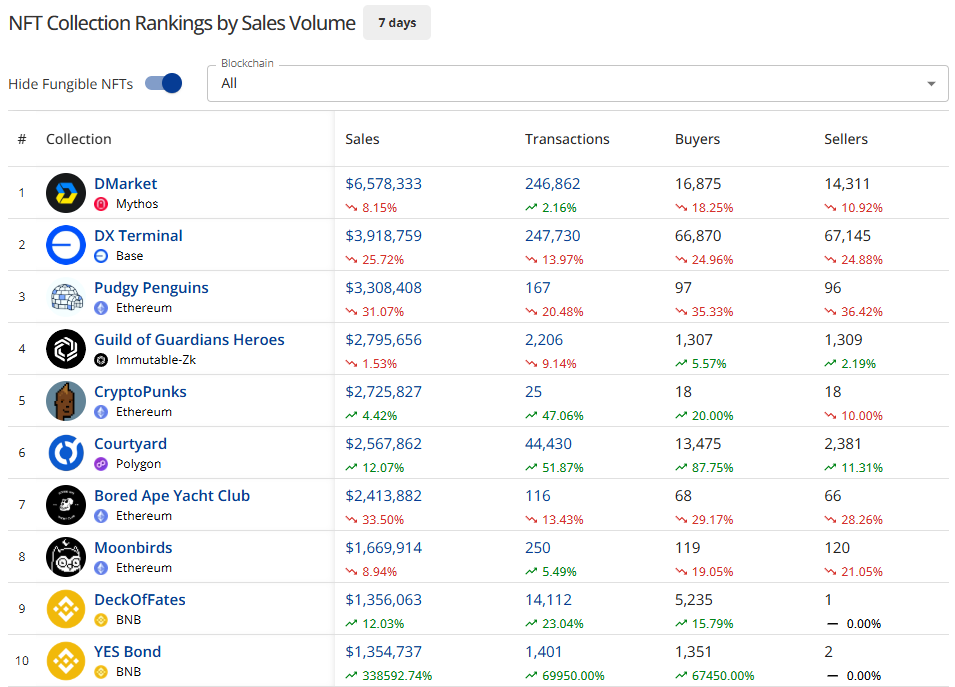 - NFT sales fell -12.30% to $80.41M, a fresh 12 month low. Buyers declined -8.93%, average sales price