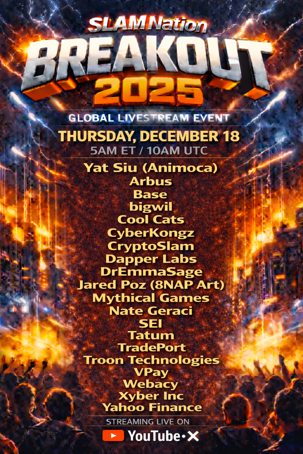 SCHEDULE - See below for announced guests. More guests & the final schedule will be announced tomorrow on @CryptoSlamio on X.