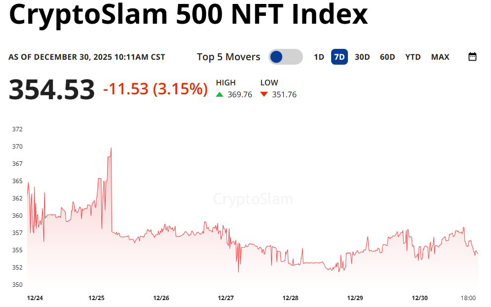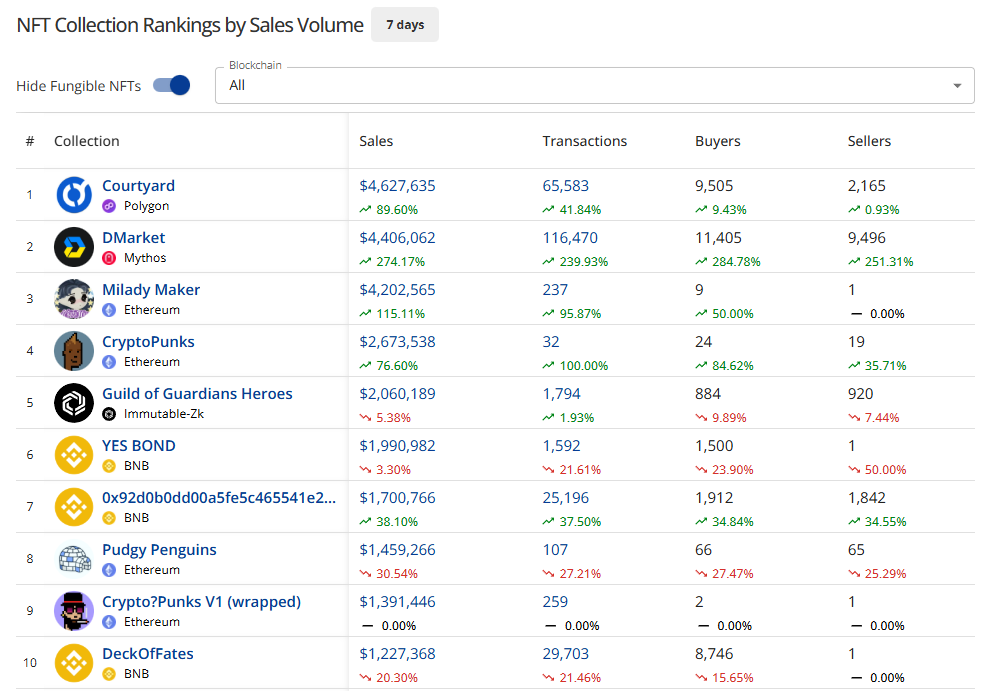 The NFT market fell to its 2nd lowest level since Feb 2021, with sales down -7.41% to $61.53M.