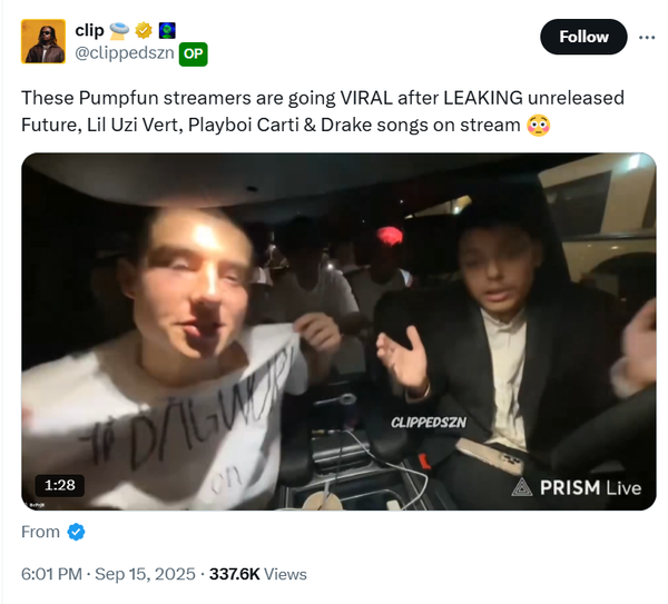 was launched by some young streamers on Friday. A few viral moments, like leaking a new Drake song, helped them earn over $180K in creator fees this week, and their token hit a $50M market cap.