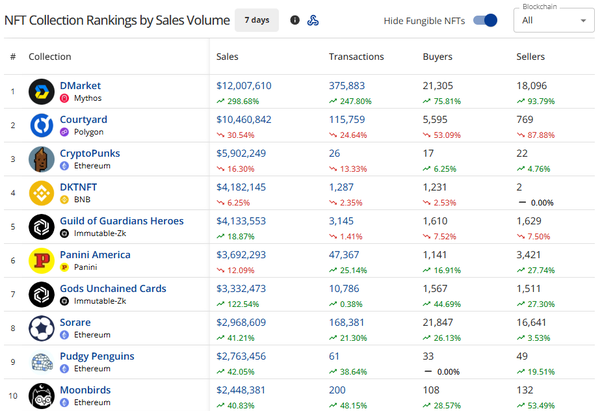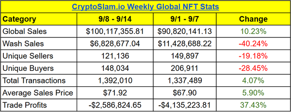 - NFT sales are up +10.23% on the week, and back over $100M.