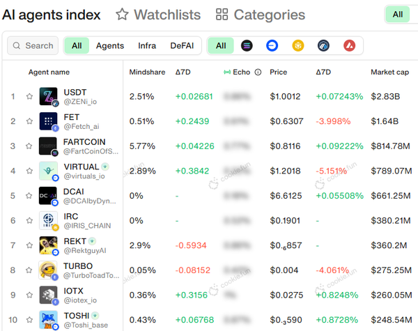 The AI market climbed +0.75% in the past 7 days to a 13.48B market cap. Top token movers include REKT (+9.98%), CHEEMS (+4.67%), OPEN (-32.63%), TIBBIR (-4.72%), and VIRTUAL (-4.93%).