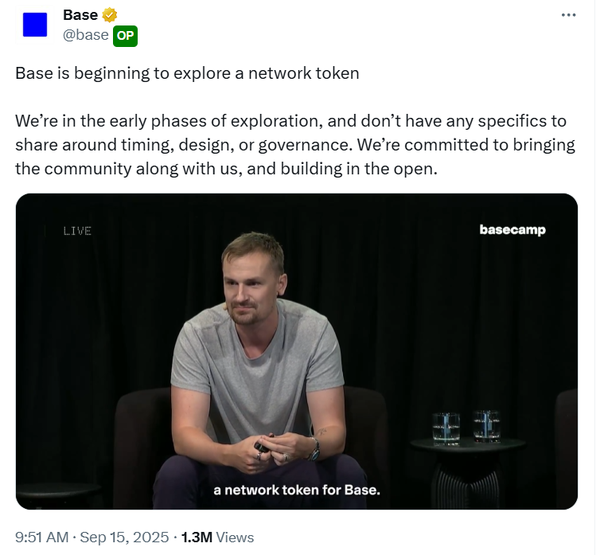 - A Base token has been rumored for nearly 2 years, but now gets official confirmation during Jesse Pollak’s State of Base 2025 keynote speech at BaseCamp.
