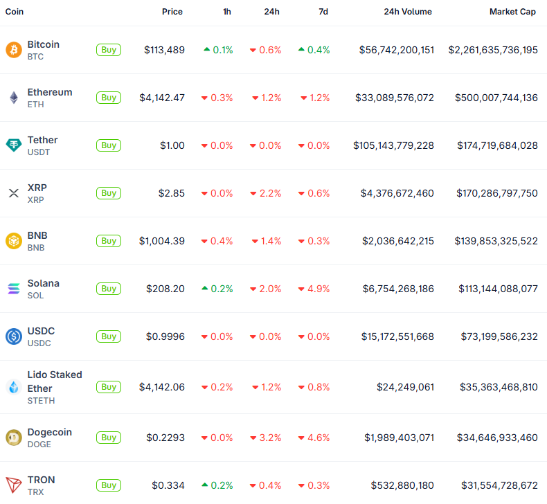 Top Gainers 7d MYX - $15.98 (+56.1%) QNT - $102.08 (+10.9%) FLR - $0.02527 (+5.8%) OKB - $186.50 (+2.4%) XAUT - $3,847.22 (+2.2%) Top Losers 7d IP - $8.52 (-32.6%) HASH - $0.03708 (-15.1%) ASTER - $1.66