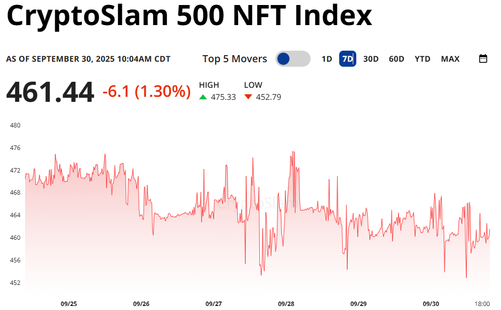 Top NFT sales over the past 7d include Hypurr #1 which sold for 9,999 HYPE ($450K), CryptoPunk #2408 for 49 ETH ($204K), 27 CryptoPunks sales over 43.5 ETH ($166K). Boogle #13 for 850.71 SOL ($171K), Pudgy Pengiun #4039 for 32.32 ETH ($127K), and Moonbird #4835 for 27.9 ETH ($111K).