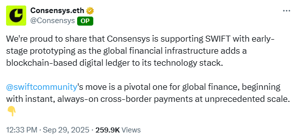 Yesterday Swift announced that they’re partnering with Consensys (the developer of Ethereum) to build a blockchain based settlement system for 24/7