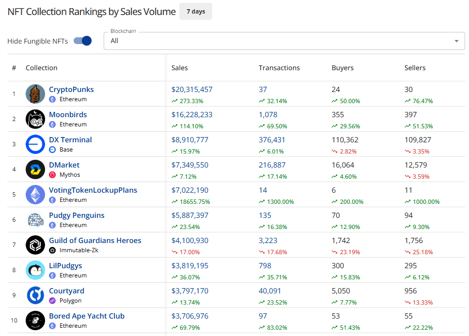 - The NFT market hit its 2nd highest weekly volume of 2025 at $185.66M.