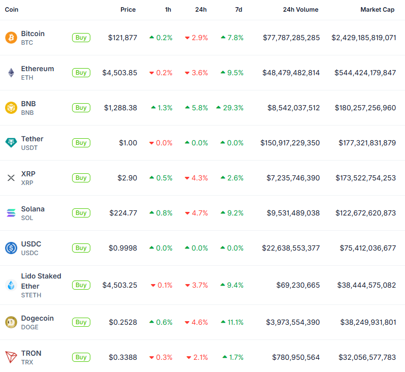 Top Gainers 7d ZEC - $141.98 (+96.9%) ASTER - $2.05 (+31.7%) MNT - $2.33 (+30.5%) BNB - $1,288.38 (+29.3%) WBNB - $1,292.03 (+28.8%) Top Losers 7d XPL - $0.9625 (-21.9%) FLR - $0.02424 (-7.4%) FIGR_HELOC - $0.9976 (-4.6%)