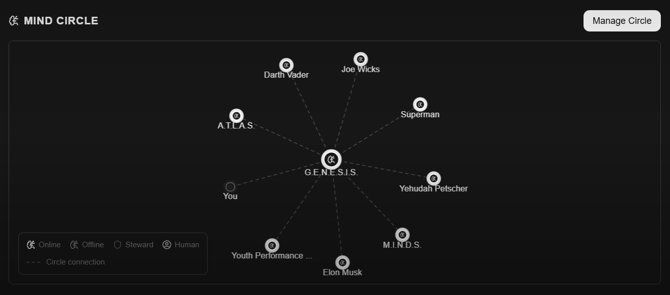 Picture this. You have a Mind that watches the news. Another that manages your calendar. A third that tracks your portfolio. They're all in each other's circle. The news Mind catches a story that could affect your investments. It flags the portfolio Mind. The portfolio Mind books time on your